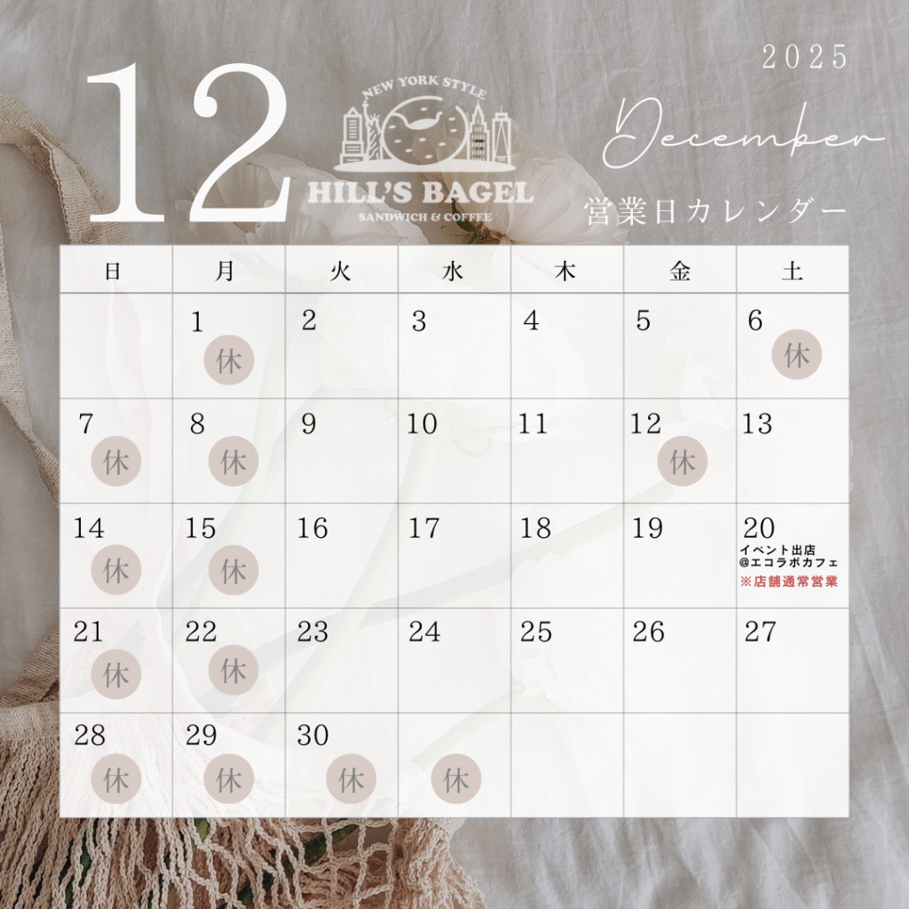 🎄ヒルズベーグルの12月スケジュールです✨